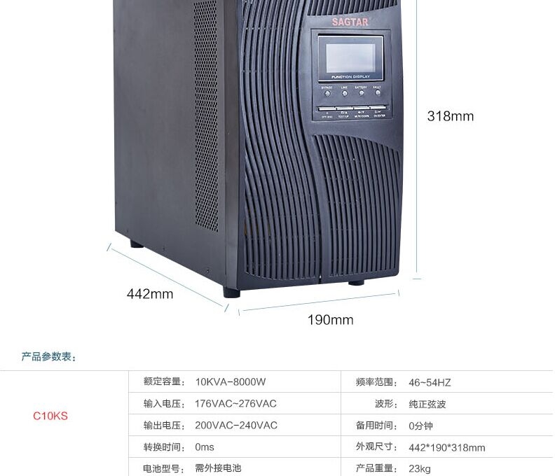 山特ups电源C10KS单进单出10KVA/8kw 延时套餐含胶体蓄电池