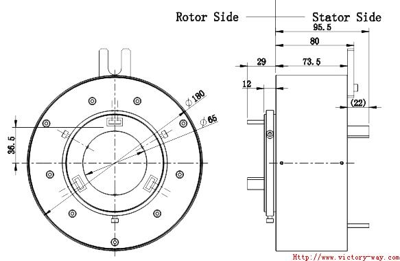 VHC65-1P360A导电滑环用于传输单路360A电流,转子和定子分别通过铜带引出,导电滑环主轴采用耐高温树脂压合而成,具有尺寸稳定,耐高温的特点。使用可靠的铜合金接触材料实现大电流传递。