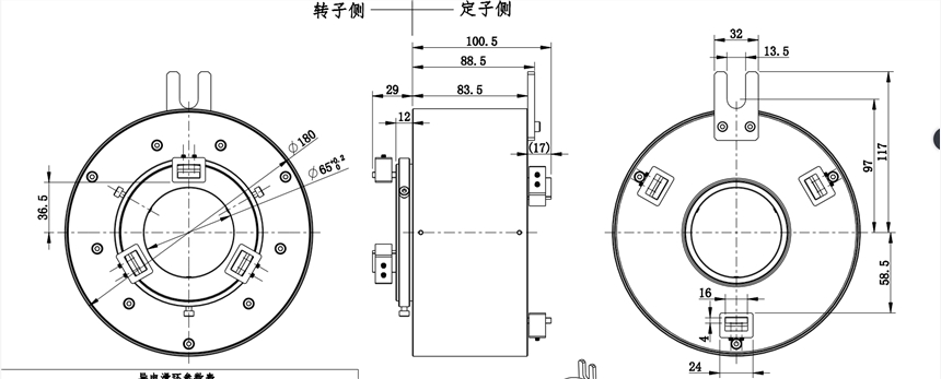 胜途电子VHC65-1P系列大电流滑环内孔65MM穿轴滑环,VHC65-1P系列导电滑环用于传输单路大电流,转子和定子分别通过铜带引出,导电滑环主轴采用耐高温树脂压合而成,具有尺寸稳定,耐高温的特点。使用可靠的铜合金接触材料实现大电流传递。