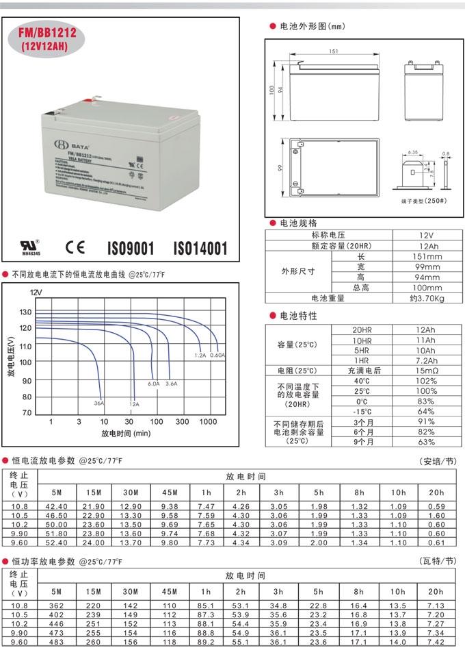 鸿贝蓄电池铅酸蓄电池FM系列FM12-12(12V12AH)