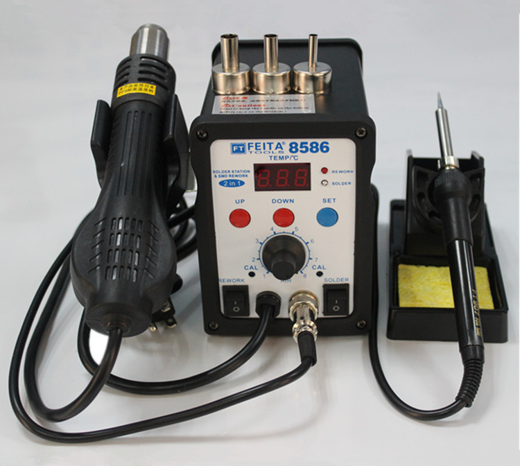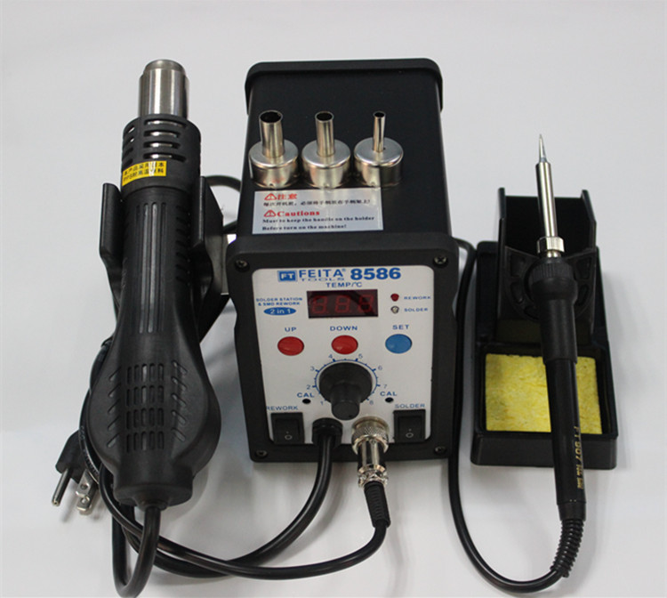 产品重量:2.6kg 产品尺寸:260*165*148mm | 产品详细介绍 应功能特点 ●整机由热风拆焊台和电焊台构成多功能一体化的集成拆焊维修系统。 ●整机核心由单片微电脑统一控制,保证热风和焊台温度精确稳定,并非两种设备的简单合并。 ●完美的二合一组合,机身小巧、耐用,美观,占用工作台面积小。 ●清晰的数码显示工作温度和工作状态,按键切换,方便直观。 ●数控按键连续调节热风温度及焊台温度满足不同的拆焊需要。 ●热风枪功率大,升温迅速,出风柔和,风量大,非常适合无铅拆焊作业。 ●焊台发热体采用低压电源供电,能有效的保护敏感器件及工作人员安全。 ●故障自我检测指示功能。 技术参数 总机 额定电压:ac 220v±10% 50hz 整机功率:700w±10%(最大) 工作环境:0~40℃ 相对湿度<80% 储存温度:-20~80℃ 相对湿度<80% 热风枪部分 工作电压:ac 220v±10% 50hz 输出功率:700w±10% 温度范围:100℃~480℃ 气流量120l/min(最大) 温度稳定度:±2℃ (静态) 设置方式:按键调节 显示方式:led数显 校温方式:数字校准 温度锁定方式:数字式 喷咀:a1130、a1170、a1110 发热丝:700w 220v ft858发热丝 电焊台部分 工作电压:ac 26v±10% 50hz 输出功率:50w±10% 温度范围:200℃~480℃ 温度稳定度:±2℃ (静态) 设置方式:按键调节 显示方式:led数显 校温方式:数字校准 温度锁定方式:数字式 焊咀对地阻抗:<2ω 焊咀对地电压:<2mv 烙铁头:at-02-si 发热芯:50w四芯陶瓷发热芯 包装清单(购买时请检查包装,以证实所列清单项目正确无误。) ●设备主机连热风枪手柄:1台 ●热风枪手柄支架:1套 ●电焊铁:1支 ●烙铁座:1个 ●电源线:1条 ●清洁海绵:1份 ●说明书:1本 ●保修卡:1份 有进一步了解本公司产品,欢迎浏览我司的官方网站:http://www.feitadz.com.;或欢迎来电咨询,全国免费服务热线:4000-224-114。 |
