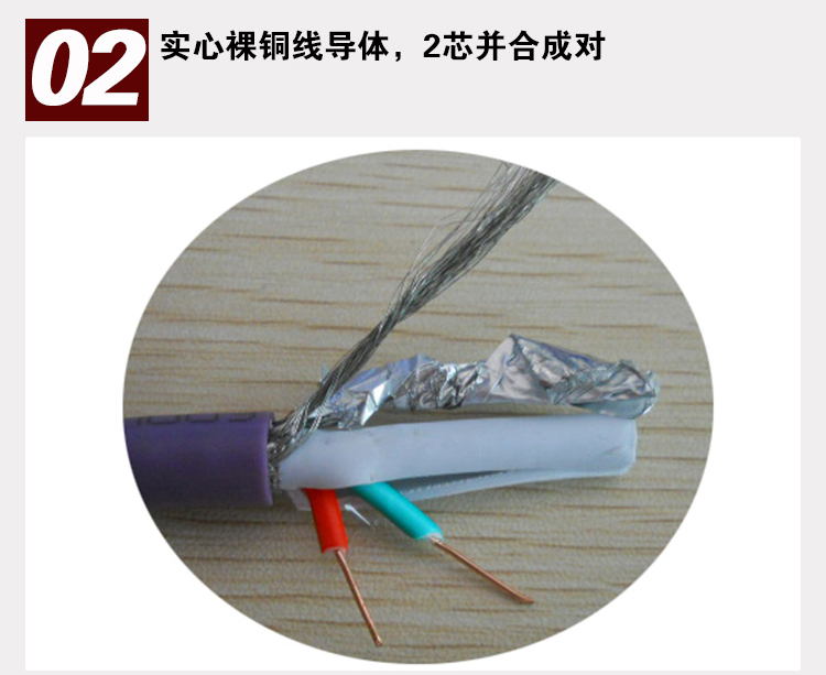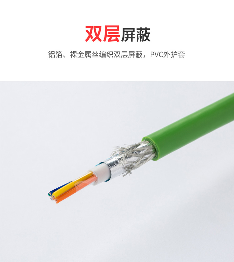 2、铝箔、裸金属丝编织双层屏蔽,PVC外护套,外观绿色。