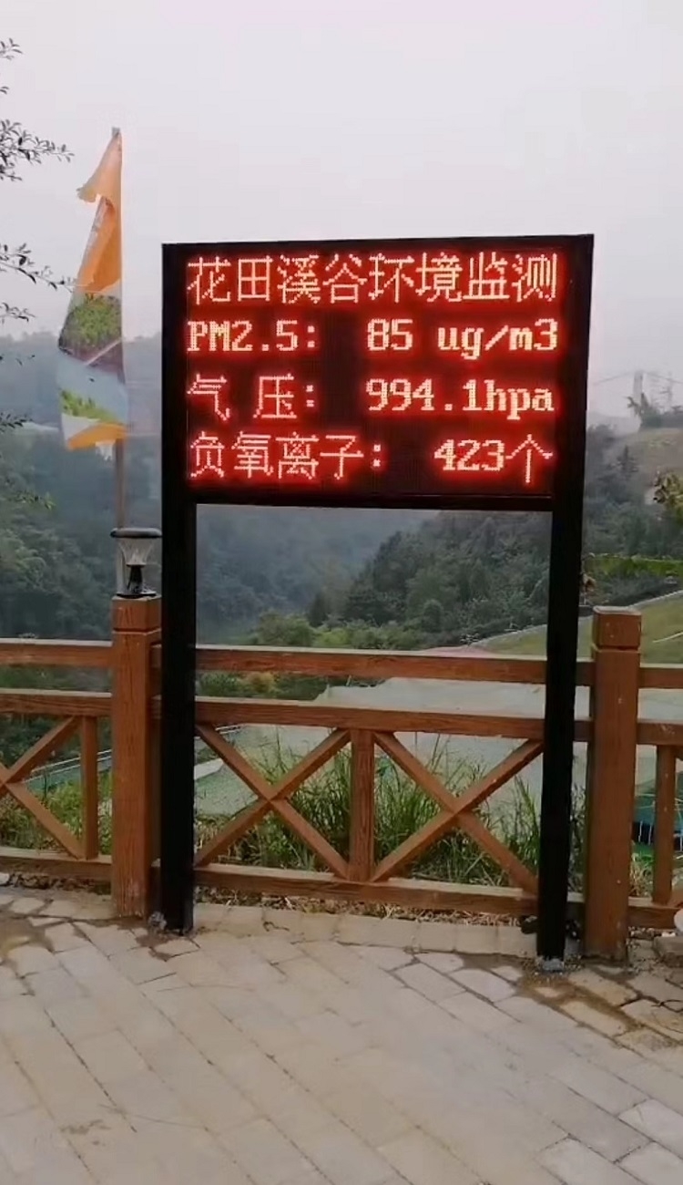 生态环境监测站是针对公园、学校和景区的一种实用型综合监测站,它除可测量常规气象要素如风向、风速、温度、湿度、气压、雨量外,还可对负氧离子、PM2.5、紫外线、日照时数等观测,还可以根据用户的需要增加能见度、二氧化碳、二氧化硫、一氧化碳、噪声等污染指数的监测,为景区及城市环境保护提供科学依据。观测要素可以根据用户需求灵活调整和增减,还可以配套多种户内户外型显示屏,为游客及市民提供各类实时的气象资料。