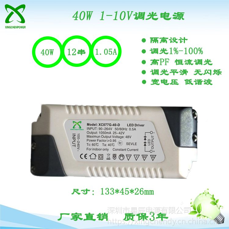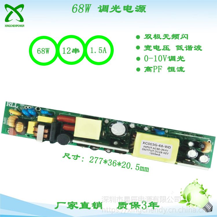 68w双极无频闪 隔离0-10v调光驱动电源 xc003 高pf 宽电压85-265v 电源