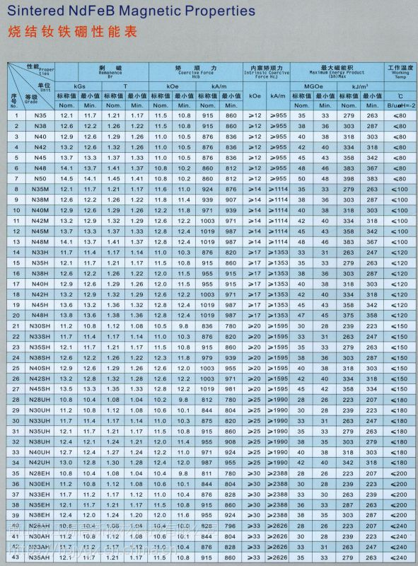 优点:烧结钕铁硼***突出的特点是剩磁br、矫顽力hcb和hcj、磁能积(bh)m都很高;因此从问世以来得到了广泛的应用。