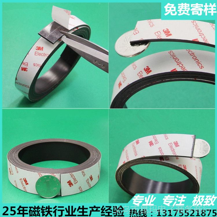 过光油裱3m胶对吸不干双面胶橡胶磁铁厂家供应优质pvc软磁材料