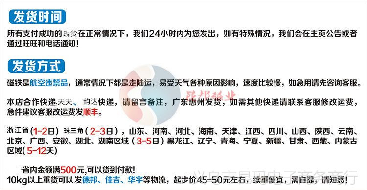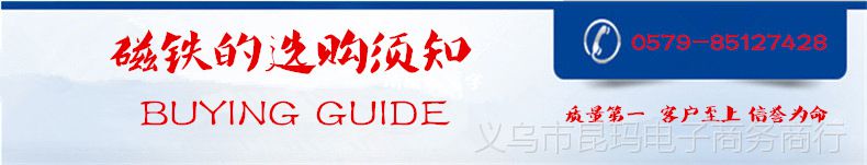 公司奉行“质量为本,客户至上,薄利多销”为经营理念,以“为员工创造价值,为客户创造效益,为中国磁性材料行业的发展奋斗终身!”为使命将一如既往的提供优良的品质和具有竞争力的磁性产品。热忱欢迎各地客户来电垂询!