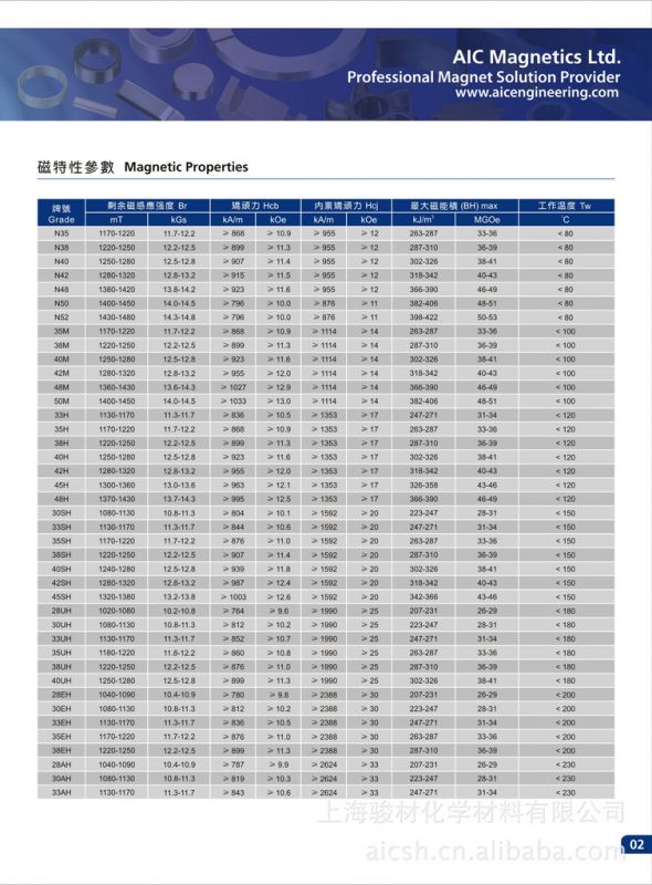 烧结钕铁硼的磁能积是烧结铁氧体的5~15倍,内禀矫顽力是铁氧体的5~10倍,是铝镍钴的6~10倍;