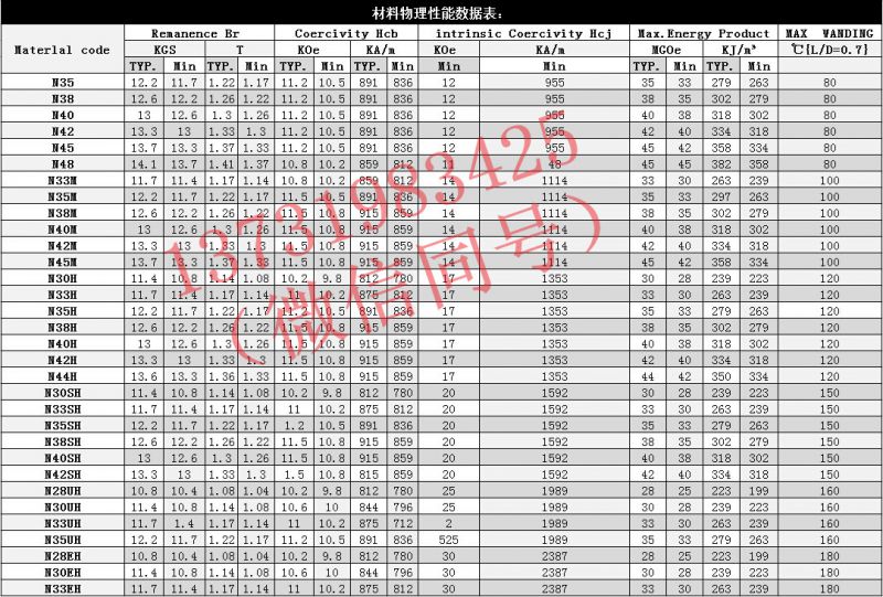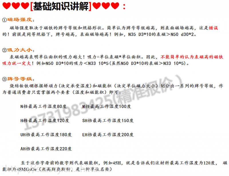 1:磁铁工作环境的估计温度、湿度、以及装配上的特殊要求;