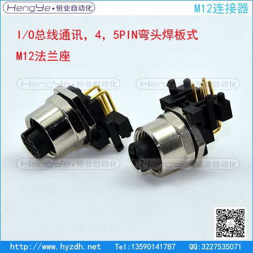型号m12法兰座4pin,5pin,i/o总线通讯pcb板专用弯头焊板式