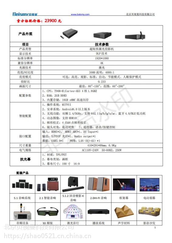 激光电视 家用激光影院 家庭激光影院 超短焦激光投影机
