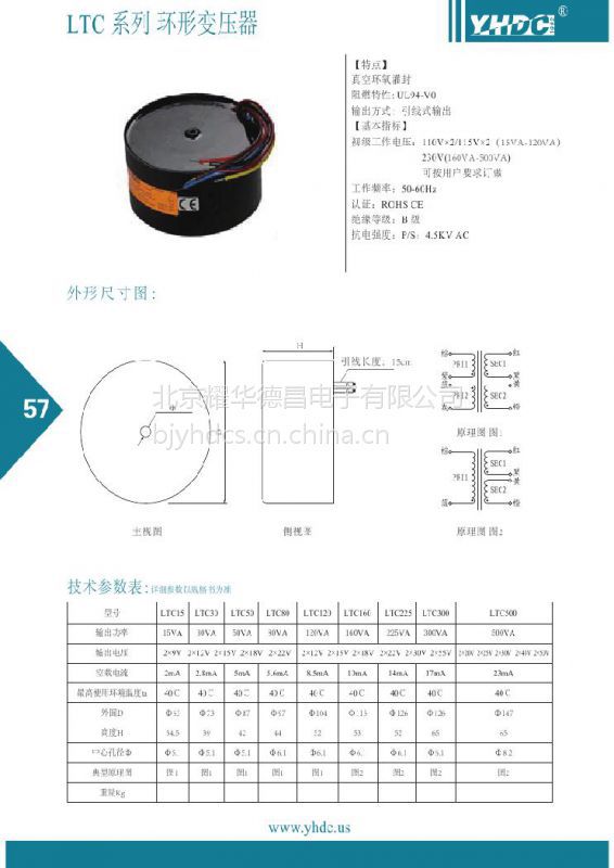 耀华德昌 输出功率15va-500va环形变压器ltc系列