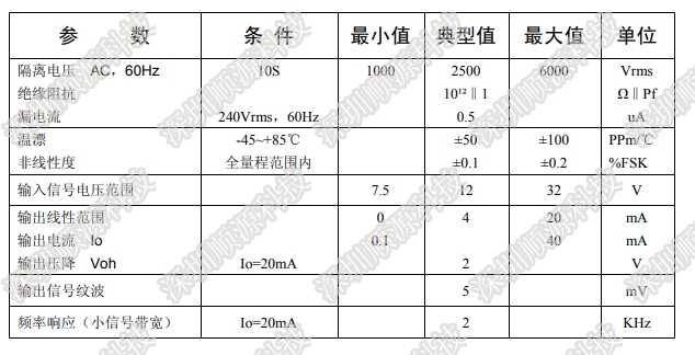 含有电流信号调制解调电路、信号耦合隔离变换电路等。很小的输入等效电阻,使该 IC 的输入电压达到超宽范