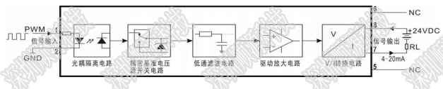 ● PWM 脉宽信号输入、回路供电 4-20mA 电流环输出方式