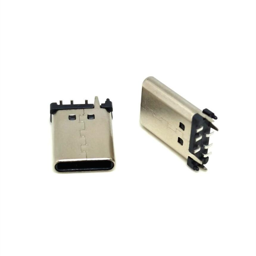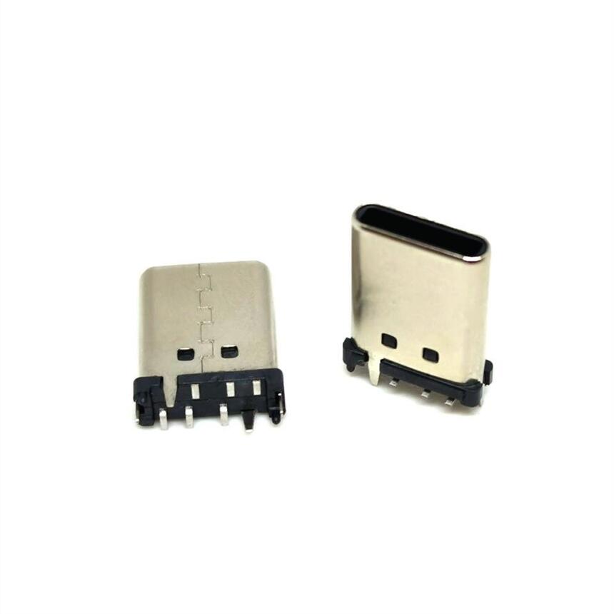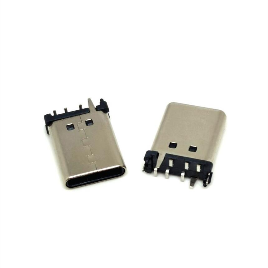 TYPE-C 6PIN公头  立式贴片SMT 四脚插板L=11.15 不锈钢壳