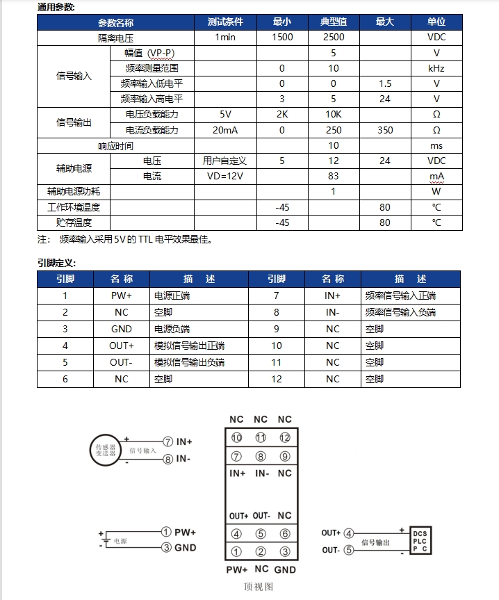 脉冲信号0-1khz/0-5khz转4-20mA/0-10V电流电压信号隔离变送器 转换器