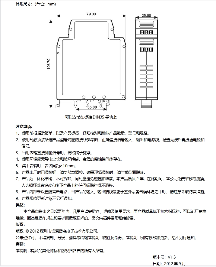 • 规格:小体积,标准DIN35导轨式安装