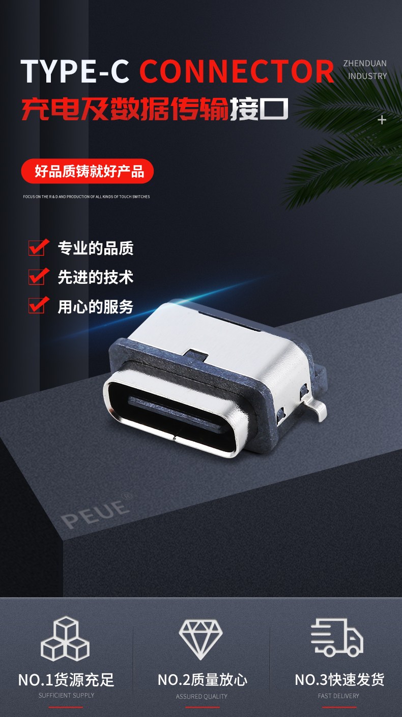 产品特性:防水 品牌:PEUE 型号;PEUE-USBC-06FSOTO282 种类;插头/插座 极数:6p 额定电流;5A 电压:100V 颜色;黑色 应用范围:手机 工作频率:高频 接口类型;USB 形状;矩形 线长;0mm 制作工艺;注塑 加工定制:是 特性:防水 接触件材质;黄铜/高导铜 绝缘体材质:LCP 芯数1 针数:6 应用领域3C数码