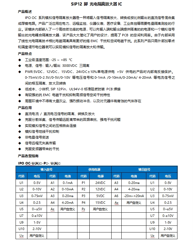 • 规格:IPO OC-U(A)□-P□- U(A)□
