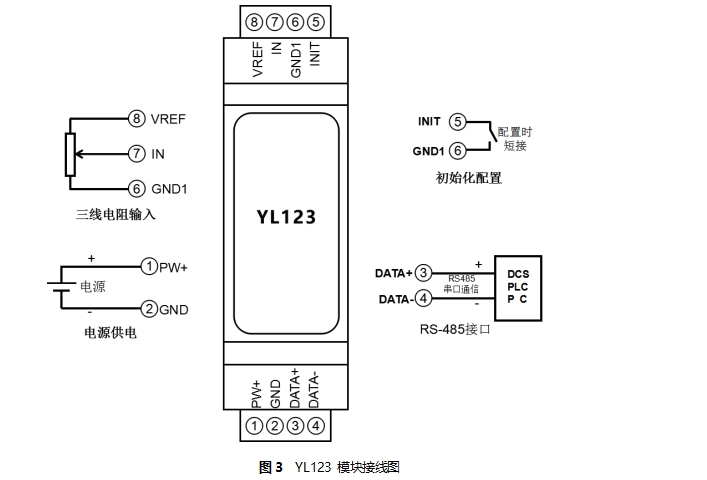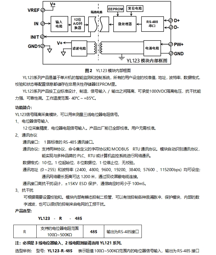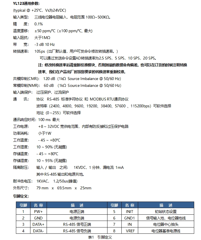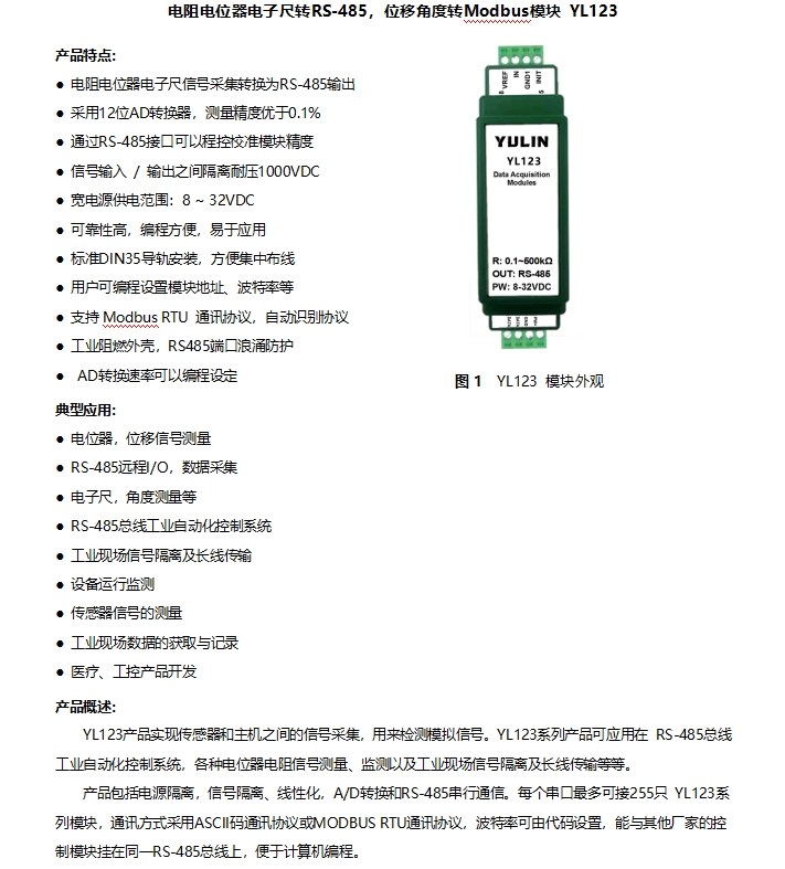 传感器信号测量电阻电位器电子尺转RS-485位移角度转Modbus模块