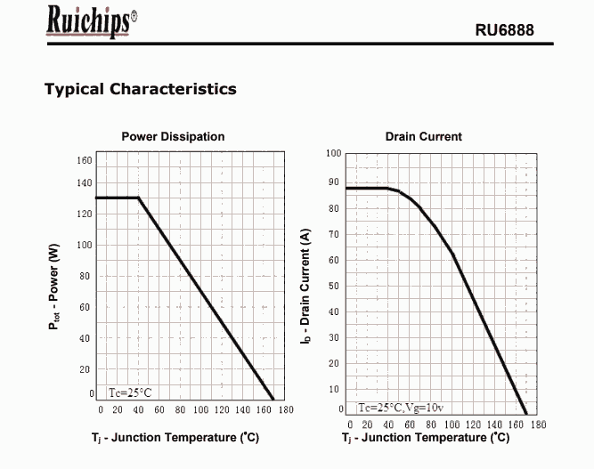 RU6888R N沟道 68V 88A N沟道场效应管(MOSFET) 漏源电压(Vdss):68V 连续漏极电流(Id):88A 功率(Pd):130W 导通电阻(RDS(on)@Vgs,Id):8mΩ@10V,35A 阈值电压(Vgs(th)@Id):4V@250uA N 沟道,68V,88A,6mΩ@10V