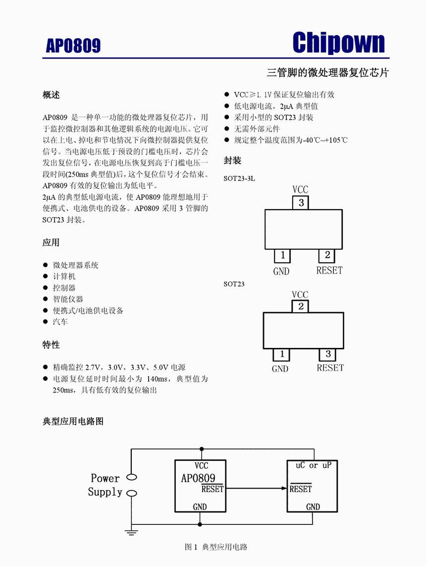 AP0809ES3-s复位芯片 芯朋微电源IC 贴片SOT-23