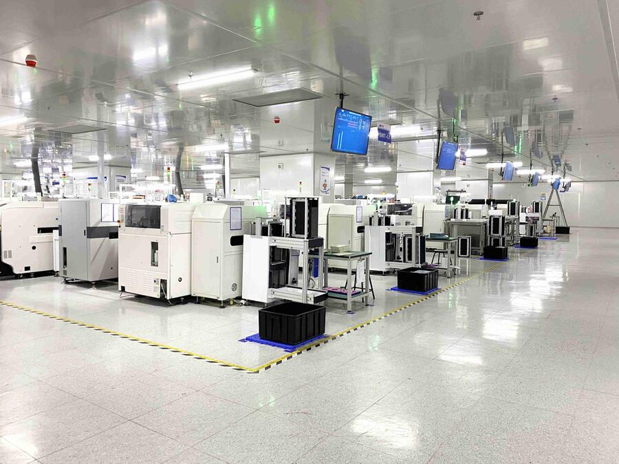 SMT生产线30条,DIP涂覆生产线,8条成品组(包)线,15条松下AI插件线,8条实验室,检测设备200+台,WMS+ERP+MES数字化系统,ESD监测系统,温湿度监测系统,支持最小01005元件贴装,支持0.1mm间距IC;