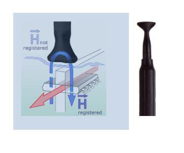 RF-E 10型电场探头的电极位于探头下边,约0.2mm宽,可以定位最小的电场源,例如0.1mm宽的导线,高引脚数集成电路的单个引脚。
