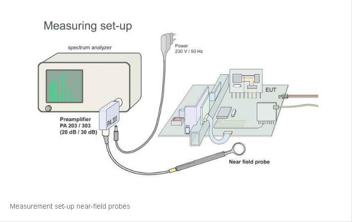 这种近场探头可以接到频谱分析仪或示波器的50Ω输入端。这些近场探头的内部没有50Ω的终端阻抗。