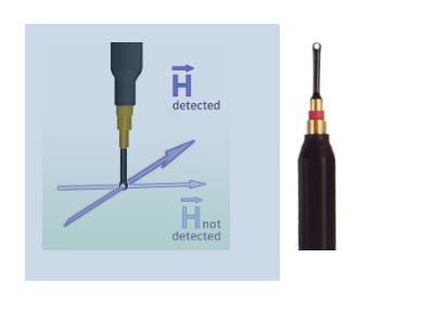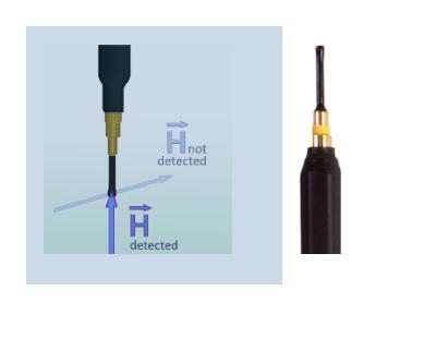 RF-B 0.3-3型磁场探头用于在极小空间内检测与探针针尖垂直的磁感线。探头内的线圈与探针柄相对垂直。测量时它可以直接靠在受测物上。