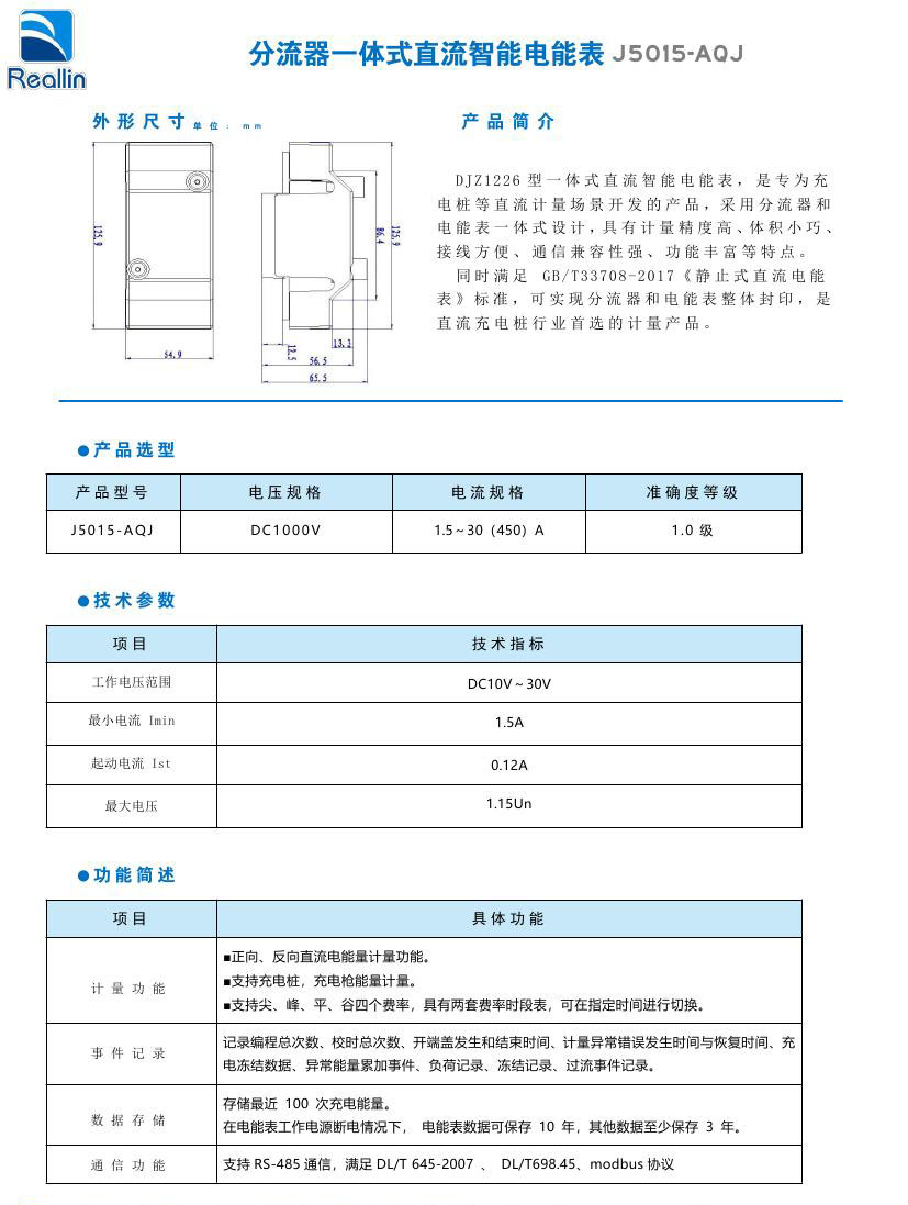 瑞银DJZ1226一体式直流智能电能表(J5015-AQJ)直流充电桩/光伏