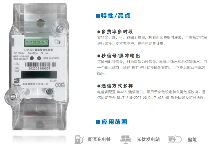 DJZ1226直流智能电能表,适合充电桩直流计量、蓄电池、太阳能电池板等直流信号设备电量测量和电能计量使用,亦可用于工矿企业,民用建筑,楼宇自动化等现代供配直流电系统。