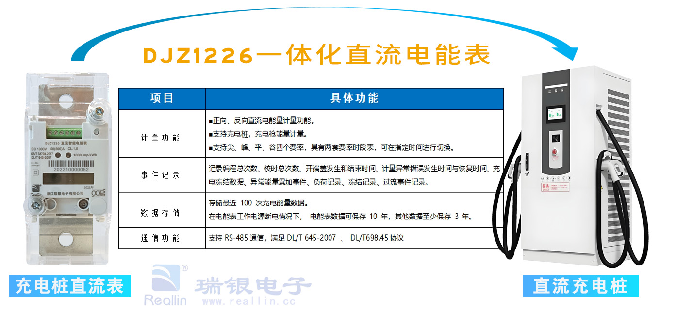 DJZ1226型直流电能表,是2021年,瑞银电子依据直流充电桩市场需求, 全新设计的新型直流电能表 。 产品符合GB/T 33708-2017 《静止式直流电能表》和 JJG 842-2017《直流电能表检定规 程》等技术规范。