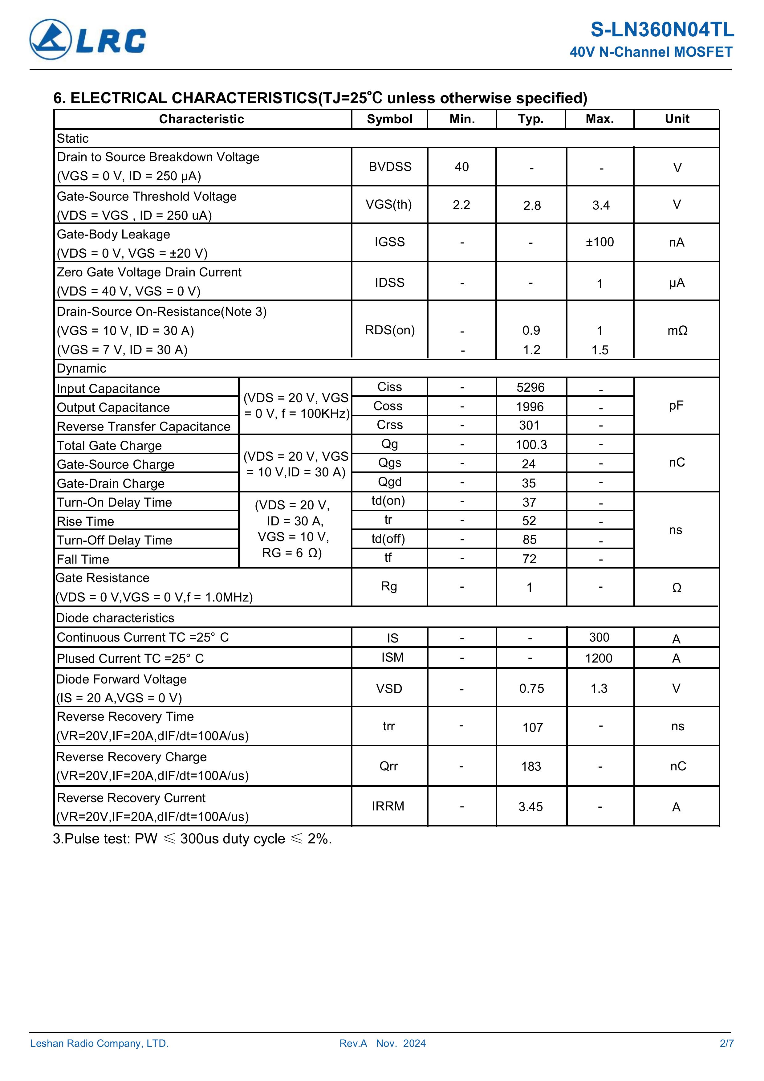 S-LN360N04TL/360N04TL 大芯片中低电压大电流低内阻低漏电的分立式功率整流晶体开关管。本品采用内置大尺寸芯片,源极7脚位支持多路输出贴片式封装,AEC-Q101认证,具有适应中低电压低内阻损耗高频高效恢复快等电气特性特点。通用于电源、小家电、锂电池、马达电机、电动工具、无人机、电器、适配器、充电器、逆变器、充电桩、特种电源、高频电源、风光储新能源、医疗设备、工业工控等产品电路作电子开关、控制、整流、放大、钳位、防反接、防逆回流等作用。