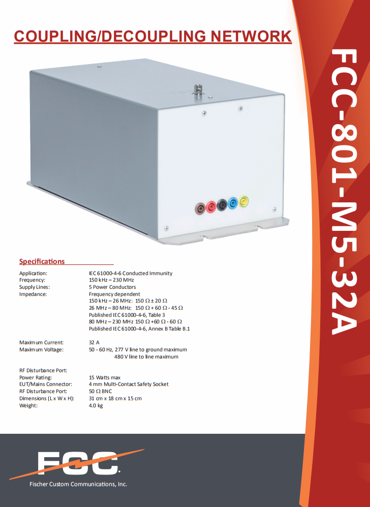 美国FCC电源线耦合去耦网络FCC-801-M5-32A规格: