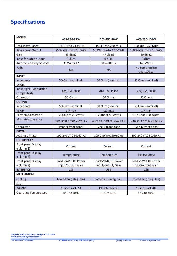 Com-Power功率放大器ACS-250-100W用于传导抗扰度的100瓦宽带功率放大器。ACS-250-100W是Com-Power系列宽带射频放大器的一部分;应用多种多样,但专门用于EMC抗扰度测试应用。ACS-250-100W型号旨在以