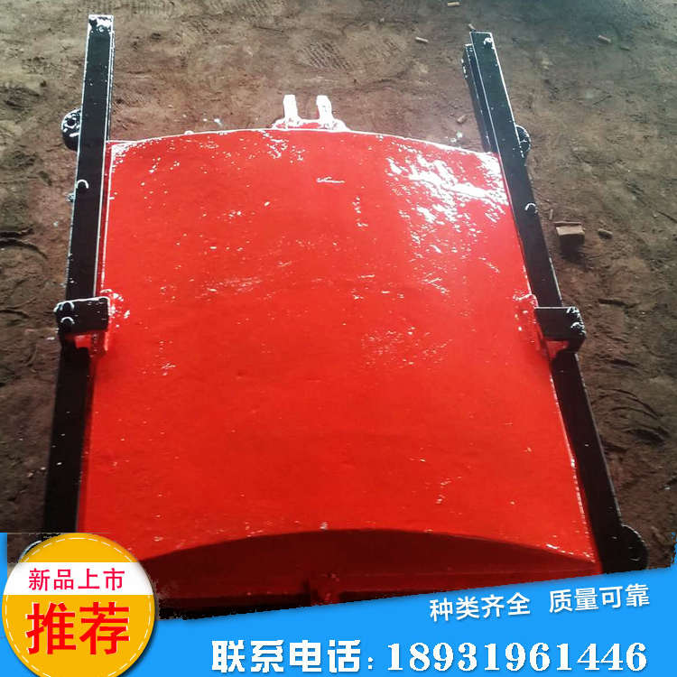 拱形铸铁闸门安装使用铸铁闸门的门槽与板面为整体安装,二次浇注方式(亦可一次性整体安装浇注),浇注前以密封止水面及侧向导轨面为基准将闸框调正,固定,撑好背面防止变形,进行浇注砼浆一定要密封实以防渗漏。铸铁闸门安装浇注砼前,调整闸门与闸框偏心与间隙,锁紧楔块装置.以达到良好的止水效果。铸铁闸门的板面与闸槽为偶合件配套,在搬运、仓储及安装时不得互换,以免影响止水效果。经常检查闸门板与闸槽是否卡涩,及时将卡涩物清除,保证位置置中,使设备正常运行。 拱形铸铁闸门由门框、闸板、导轨、密封条、传动螺杆、吊块螺母/吊耳和可调整密封机构等部件组成,其中门框和闸板均选用优质灰口铸铁或球墨铸铁制成,导轨左右对称布置且用不锈钢螺栓定位销与门框二侧端部连接(对中小口径的闸门,其导轨可与门框浇注成一体),导轨长度一般为闸门全开启高度的1/2~1/3,因而整体结构强度高、刚性高、耐磨、耐腐蚀性好、承压能力大。