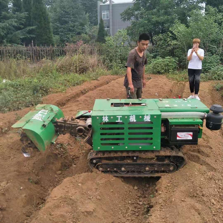 多功能 履带式开沟施肥机安装上不同的配件可以进行单独旋耕、回填、单独开沟、施肥、也可混合搭配使用。产品结实耐用,性能优越,操作方便.耐用:机身加厚,密,履带式行走,可进行原地转向。刀具都是加厚75号猛钢锻造,非常耐磨耐用,工作效率高.