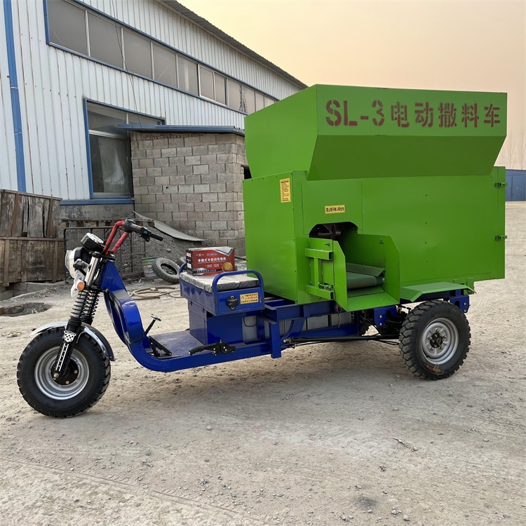 撒料车的主要功能是将成品日粮直接抛撒在饲喂区域内一次性完成饲喂,广泛用于农牧业养殖区,大中型饲养场和规范社区饲养场的饲喂作业,可将各种牧草,农作物秸秆,青贮饲料等纤维性饲料混合搅拌均匀后,投入本车内,进行投喂作业。使用简单方便,易于操作,产品质量可靠,经久耐用,撒料过程中可根据用户的圈宿牲畜的密度调节饲喂料,使用效率高,省时省力,节省养殖场空间。