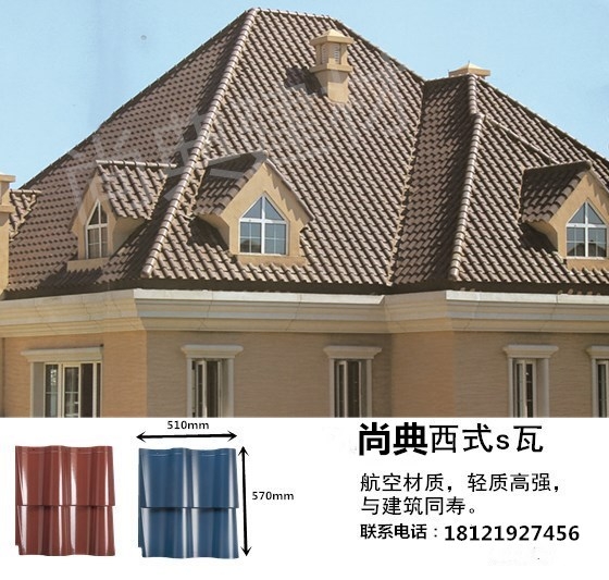 高分子西式瓦产品单张面积大,产品强度大且质轻,所以安装更加简便快捷,产品优异的防水性能及科学合理的搭接设计所以产品防水可以做到滴水不漏,所以可以省去防水层,总之与传统青筒瓦和小青瓦比,安装十分简便快捷。