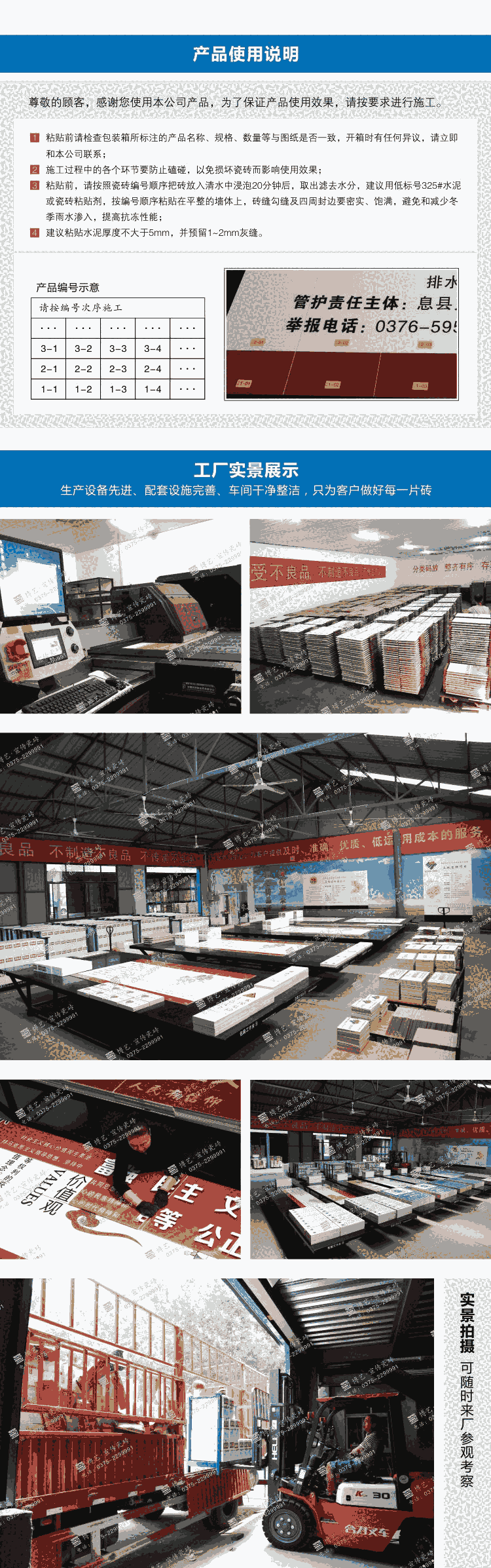 公司自1996年创建以来,以社会需求为导向,产品不断升级更新。在多年的生产和经营中,公司以产品质量求生存,诚信经营,发展。公司全体员工本着认真、负责、的工作态度,全力以赴,用心做好每一片砖,用心服务好每一位客户,实现“同等质量,价格低;同等价格,质量更优”的承诺。力求为客户创造出更新、更好的产品。数年来,公司为全国各地的国土、农综、水利、林业等部门的标志牌建设输送了不计其数的产品,获得了客户的一致好评及各级主管的认可和赞赏,并广泛地在各地推广使用。