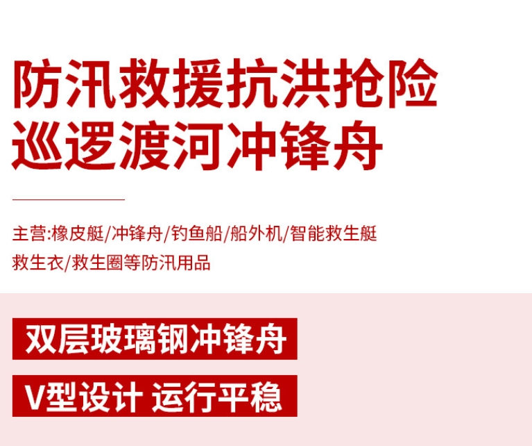 公司生产的玻璃钢船(玻璃钢冲锋舟),适用于防汛应急、消防应急指挥、休闲垂钓、鱼塘自用,都是非常好的选择。材质坚固,做工精良,尺寸从4米到6米多不等。更具客户需求,可支持定制。