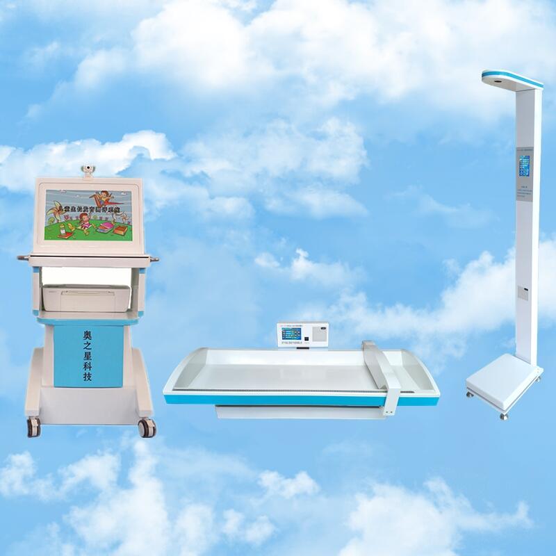 3、儿童智能体检仪采用无接触式原装进口超声波探头测身高,并有证明文件;电子精密压敏传感器测体重,并可智能去除衣服重量;测量结果分析自动打印;豪华彩色液晶触摸屏显示;语音提示,音量可调节,测量值播报;待机时显示日期、时间和温度;采用串口无线通讯传输技术,传输距离100m。
