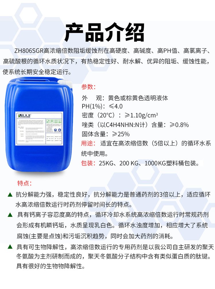 批量供应循环冷却水水处理药剂高浓缩倍数缓蚀阻垢剂