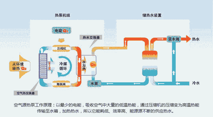 空气源热泵(Air-source heat pump)是一种高效的取暖、制冷设备,将空气中的热能加以利用,实现室内冷热舒适的同时,节能环保,减少对化石能源的依赖和排放的污染物。空气源热泵基本原理是利用空气中蕴含的热能来进行加热或制冷,通过压缩,蒸发等技术循环进行热能转移,将低温热量提高到高温水,满足室内的供暖、热水和制冷需求。空气能三联供它将空气源热泵的供暖、制冷、热水三种功能进行集成,一次性解决了家庭所需要的所有热能需求。这样的空气能三联供设备不但可以减少占地面积、节省安装成本,还可以大幅度提高能源利用效率,减少能源浪费,因此在未来的能源改革中,空气源热泵的应用前景会越来越广泛。