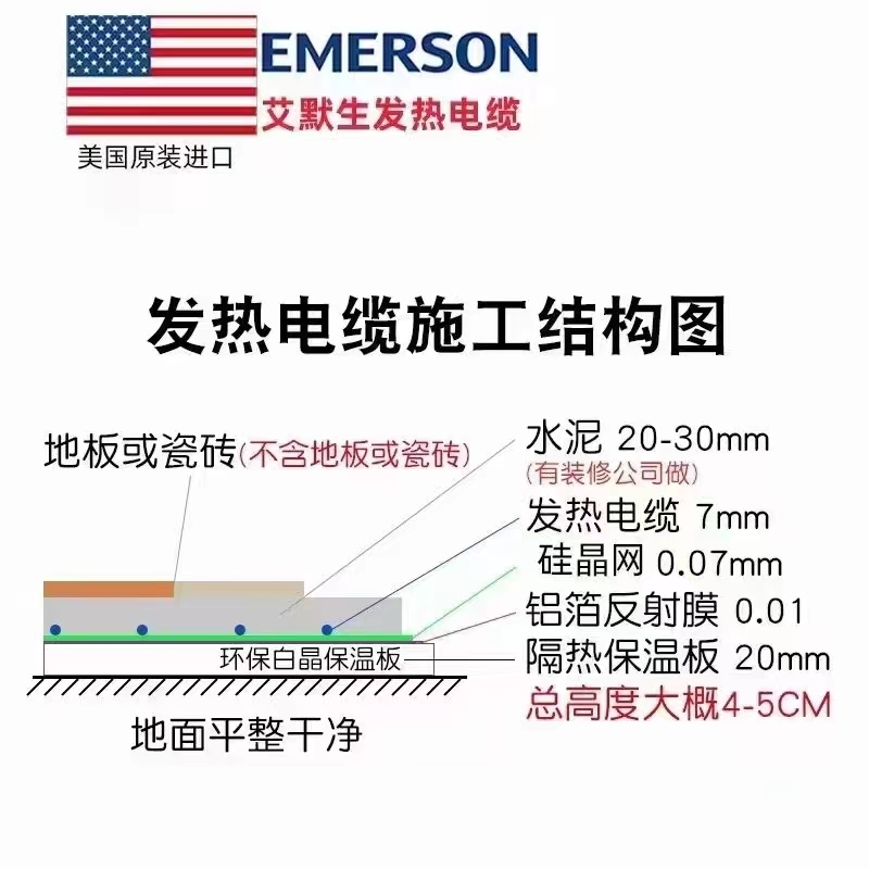 绍兴美国艾默生电缆地暖/原装进口/质保20年