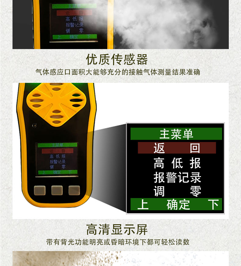 测量对象 | 可燃气、一氧化碳、氧气、硫化氢 | ||