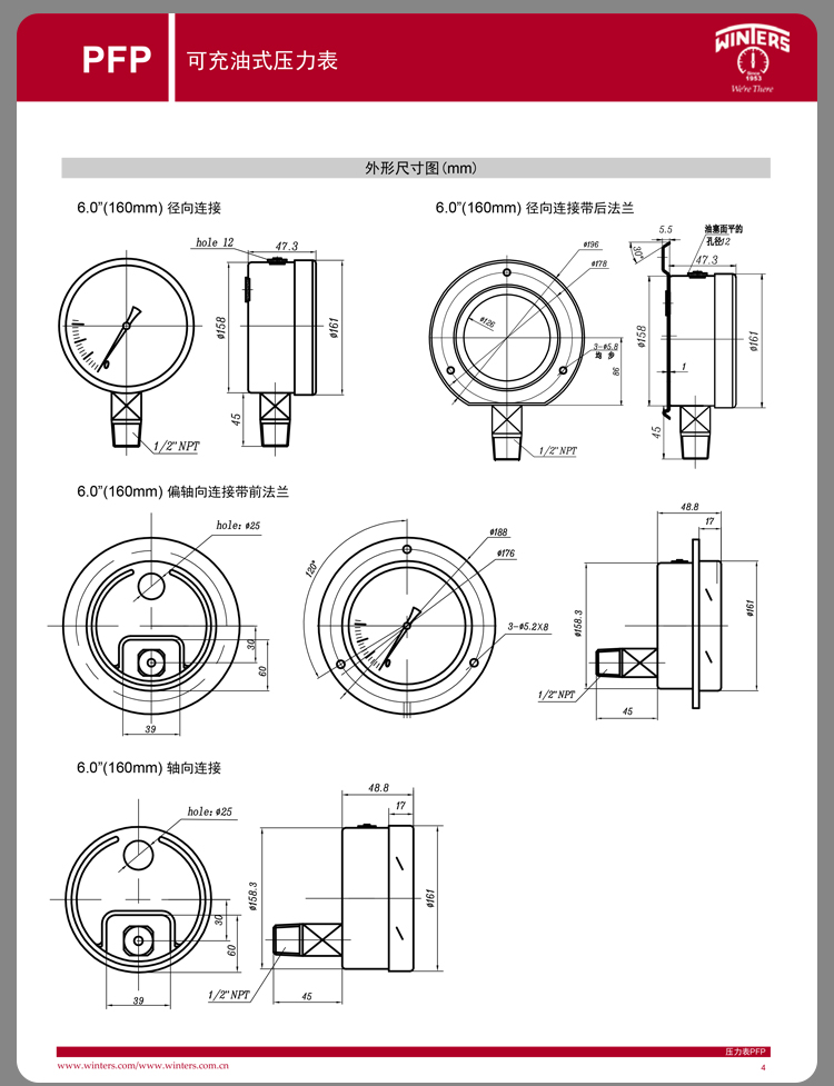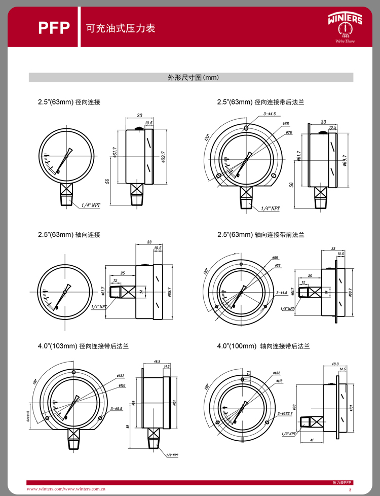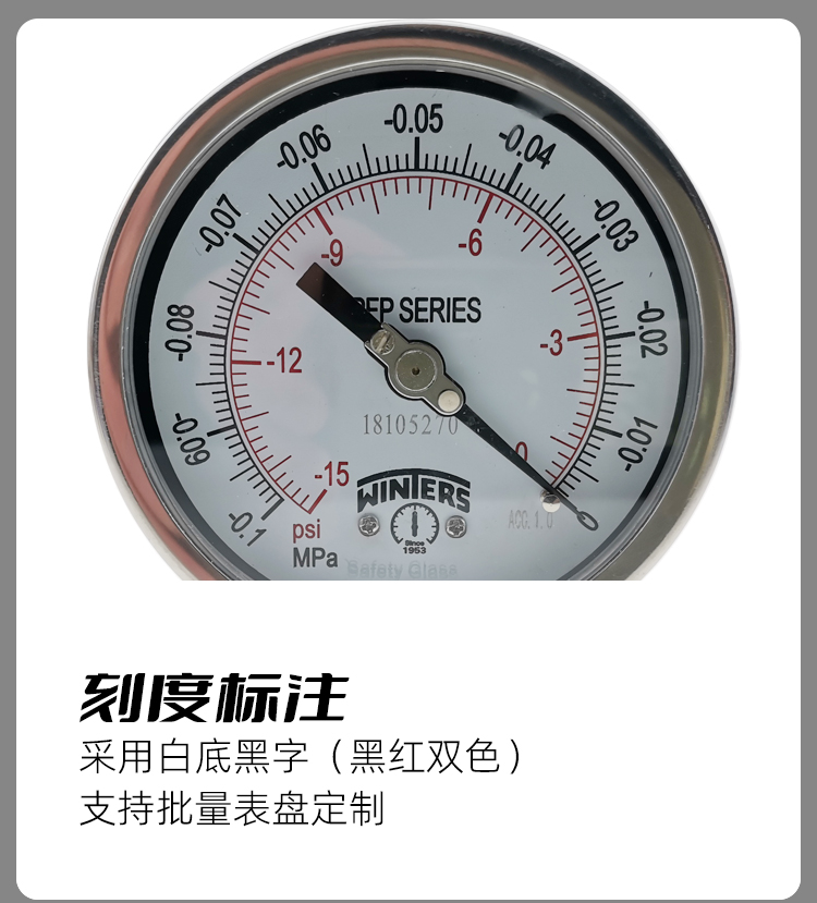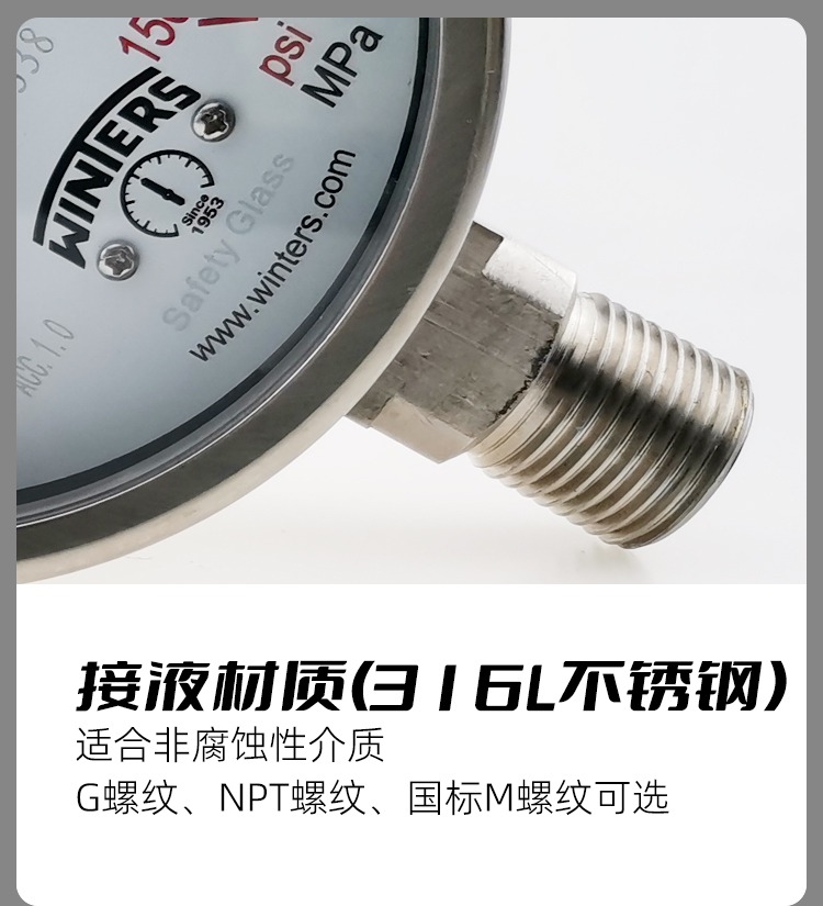 PFP-40文特斯WINTERS水气液压100mm不锈钢316SS充油1.0压力表