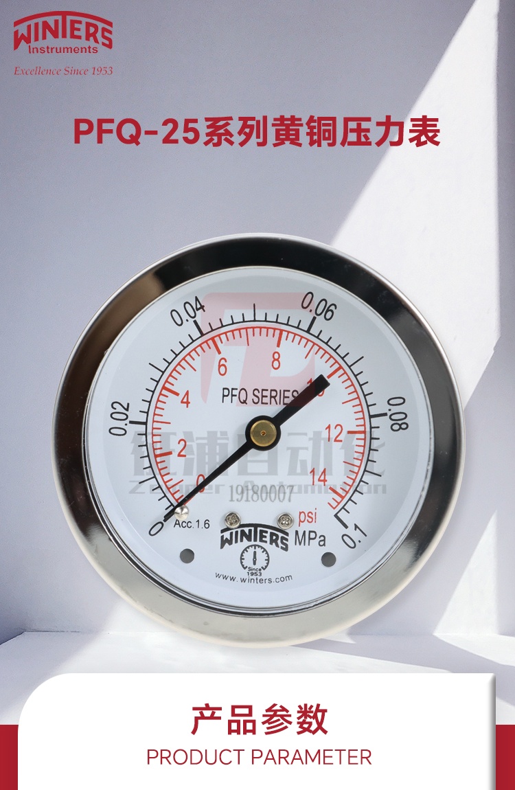 不锈钢压力表PFQ-25轴向IP65文特斯WINTERS代理包邮液压设备用
