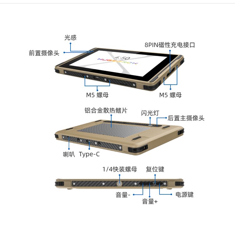 机壳材质 | 沙漠黄(PC ABS),深灰色(PC ABS) | ||